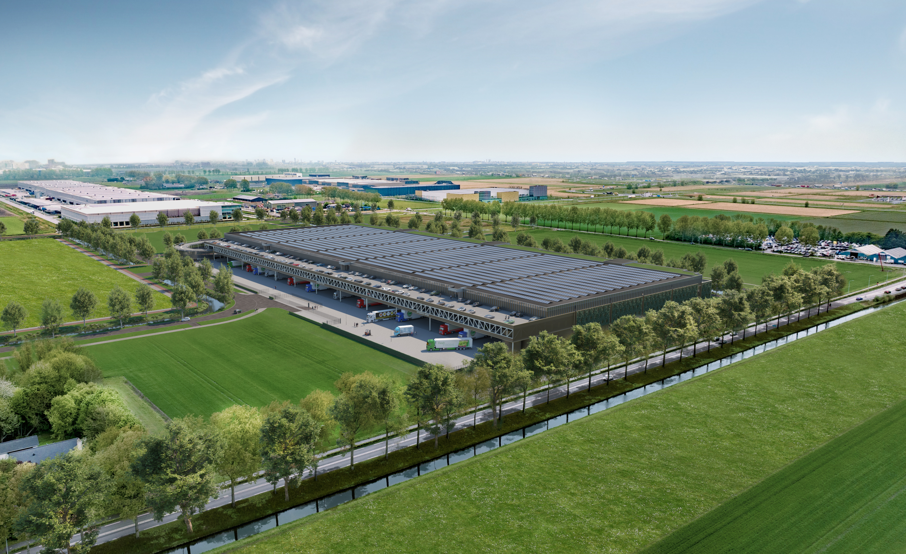 AM has recently started with the construction of this 45,000 sqn high-end distribution center, located on the last large plot at Schiphol Trade Park in Hoofddorp. The building is being developed to very high sustainability standards and with a strong focus on nature-inclusive design. For example, the roof will largely be fitted with solar panels and moss-sedum vegetation, and the façades will also be largely covered with greenery. In addition, the building will be awarded a BREEAM EXCELLENT certification.