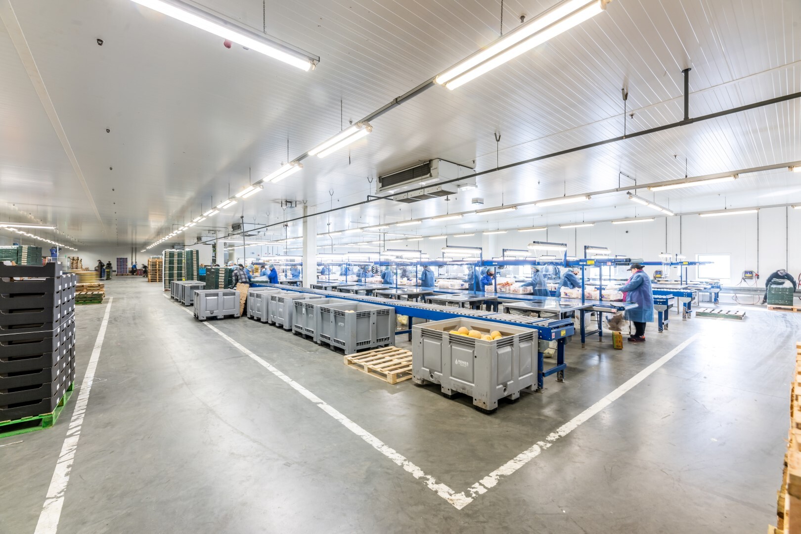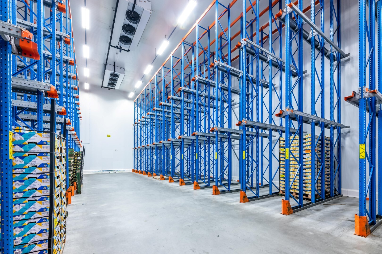 - de twee brede gangpartijen die toegang bieden tot de koelcellen en noordzijde en zuidzijde van het gebouw met elkaar bevinden zijn geconditioneerd en voorzien van aanrijdbeveiligingen.